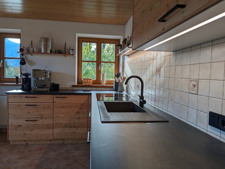 In unserem kleinen Ausstellungsraum in Unterwössen stehen viele Muster von Fronten und Arbeitsflächen bereit.